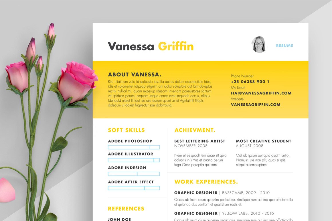 A Sharp and Professional Resume Template for creative businesses, web designer, web developer. Created in Adobe InDesign. It comes in two paper sizes including US Letter and International A4. You can with easy change the color, font, icon match with your style.