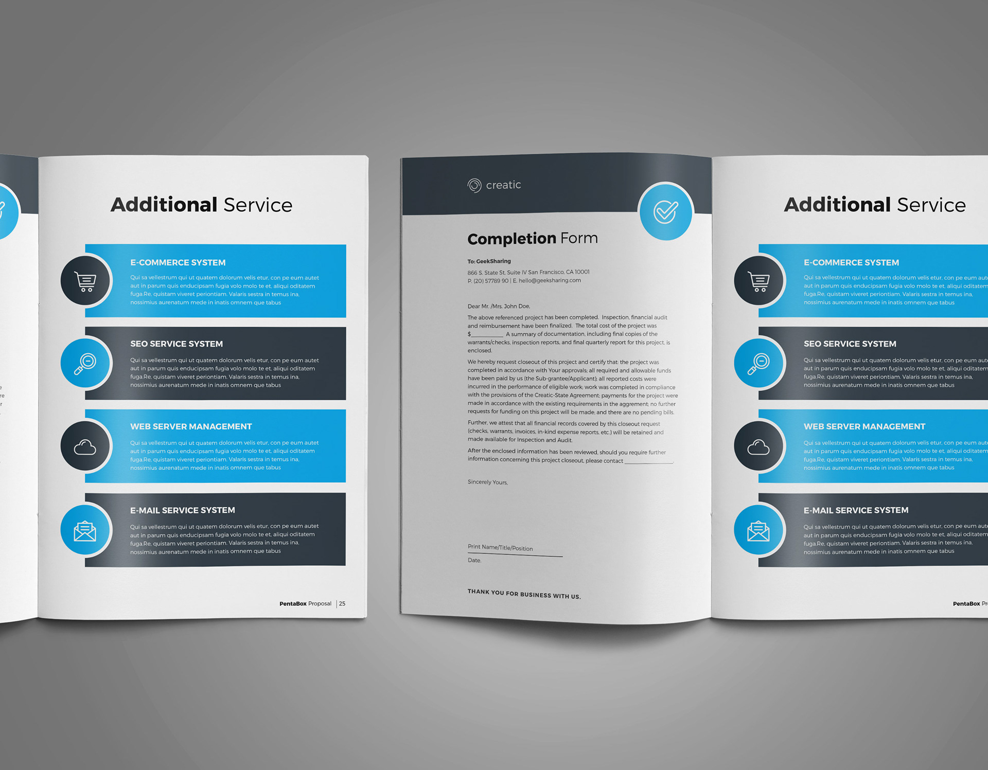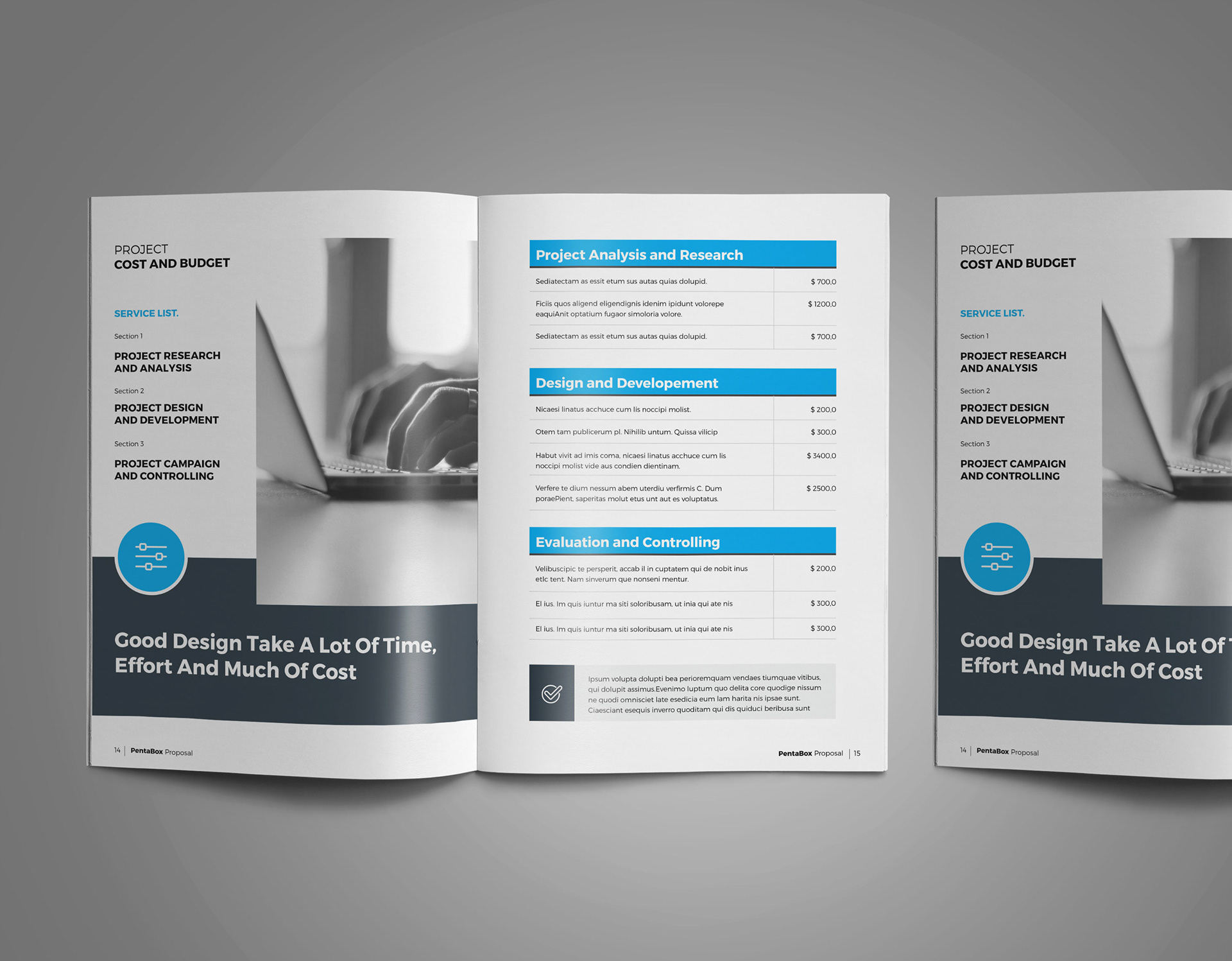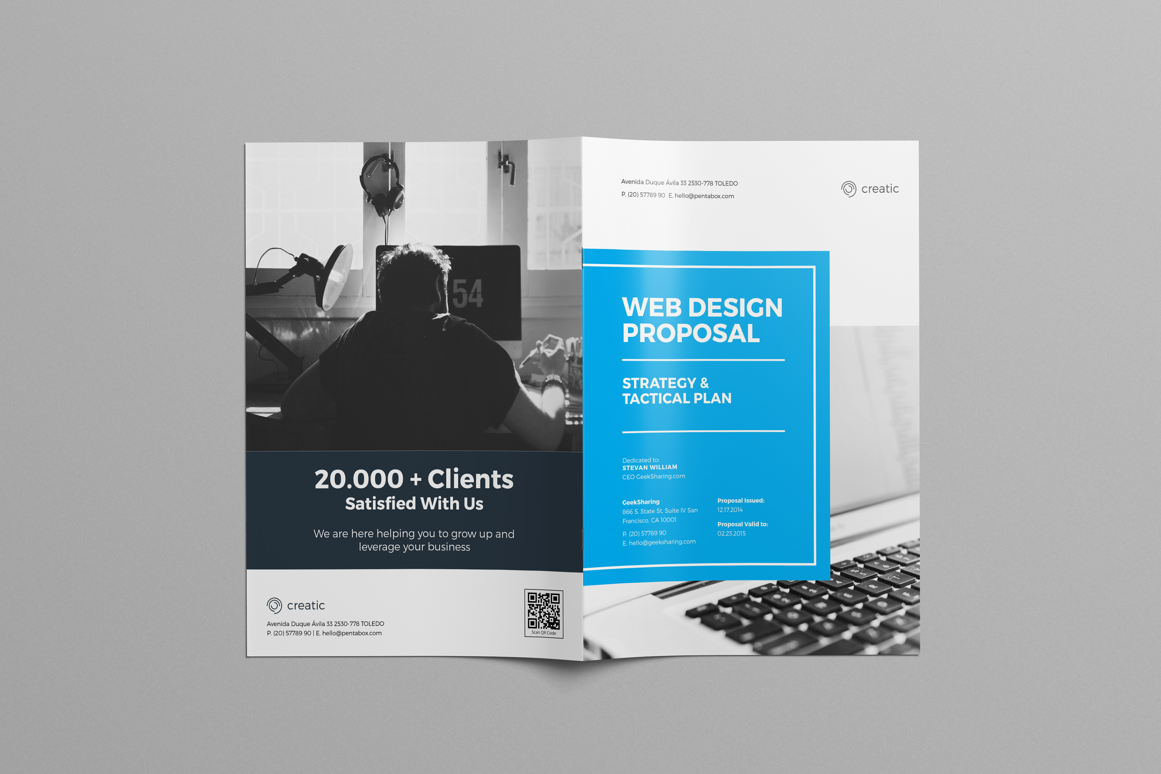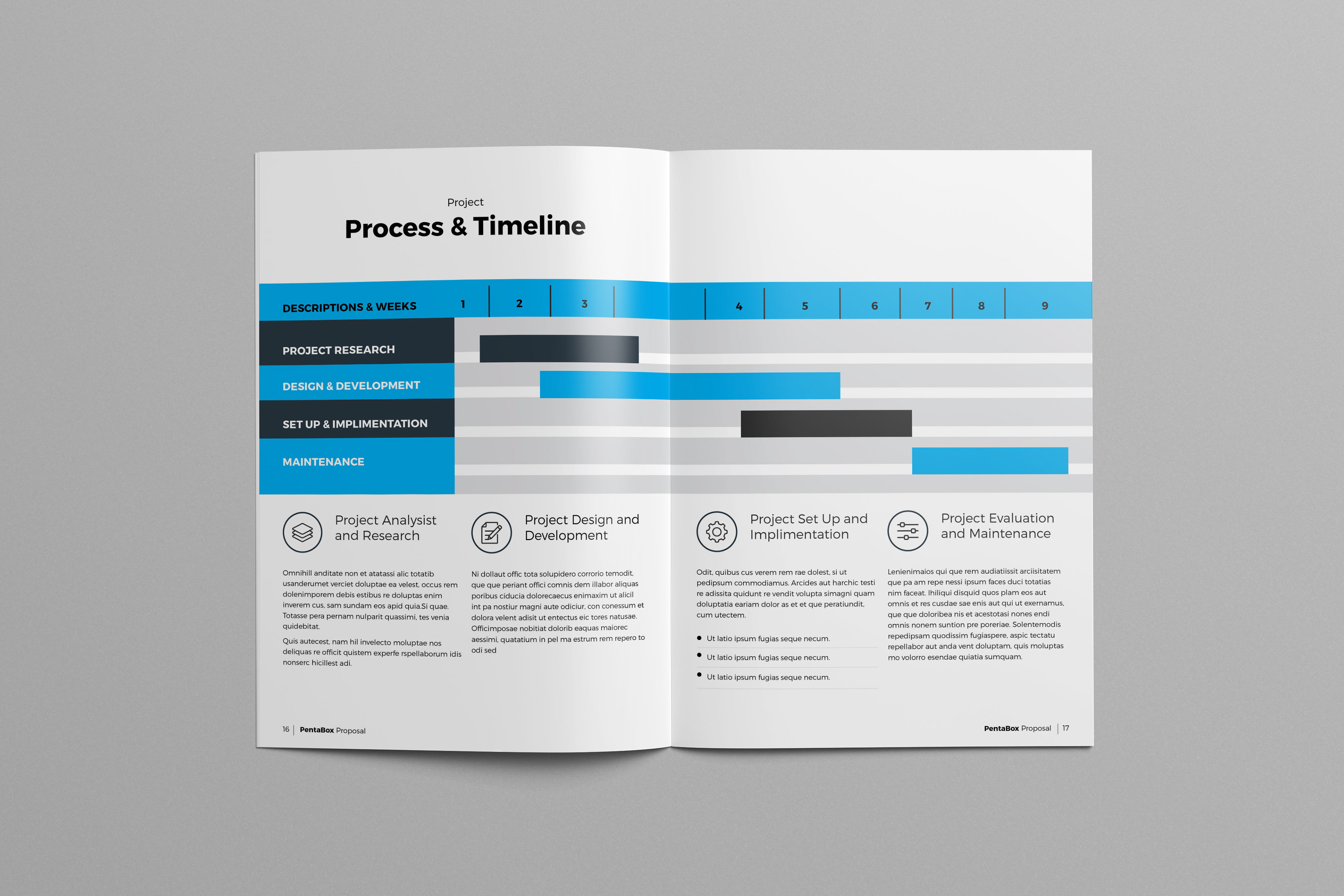 A Sharp and Professional Project Proposal template for creative businesses, created in Adobe InDesign, it comes in two paper sizes including US Letter and International A4.